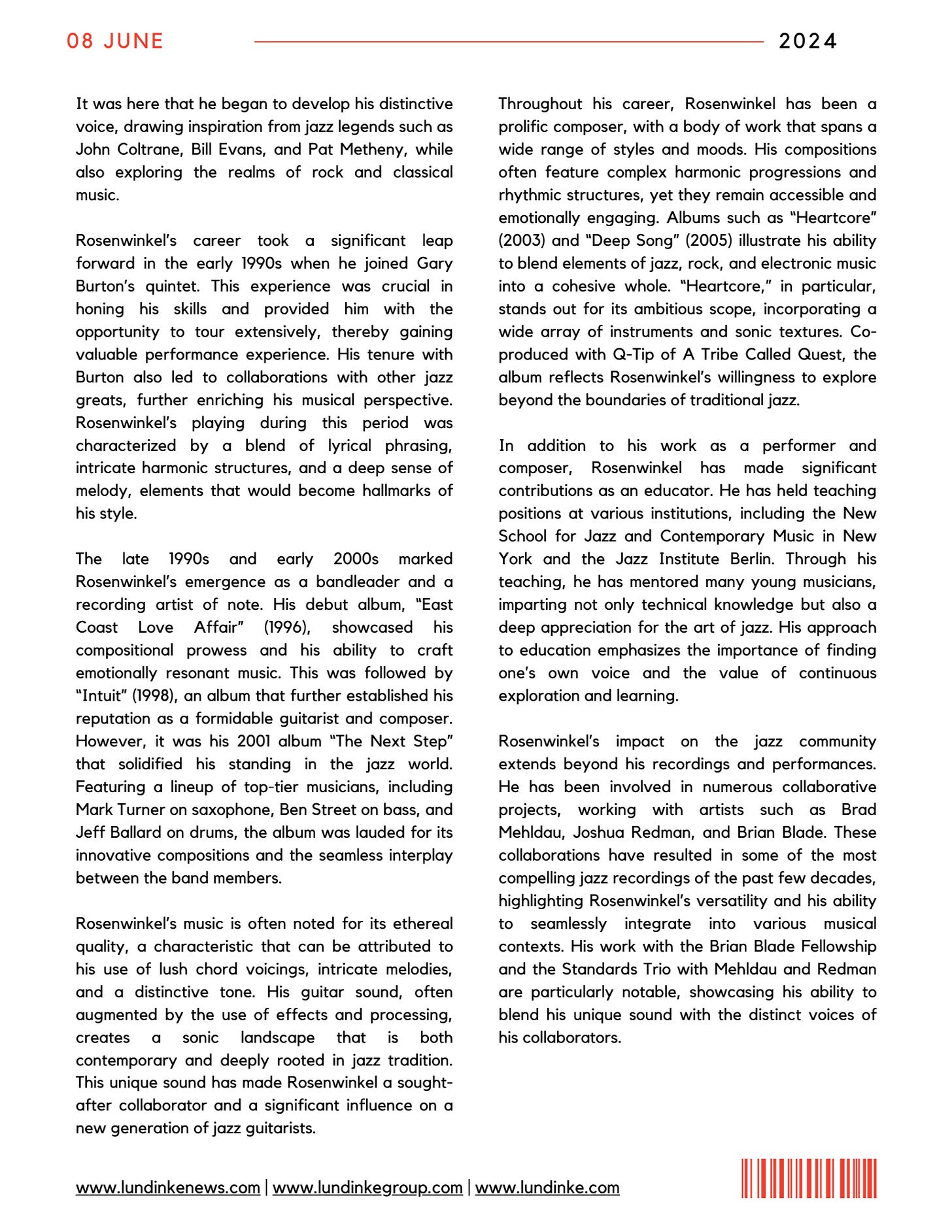 LUNDINKE MUSIC MAGAZINE: VOL 1