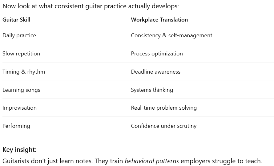 “Guitar trained me how to learn efficiently start slow, isolate weak points, repeat with intention, then apply immediately.