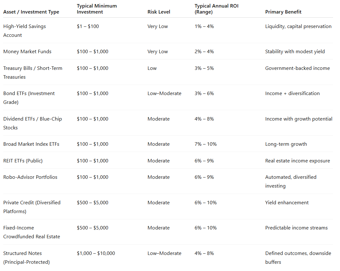 Small-Investment Asset Classes & Typical ROI