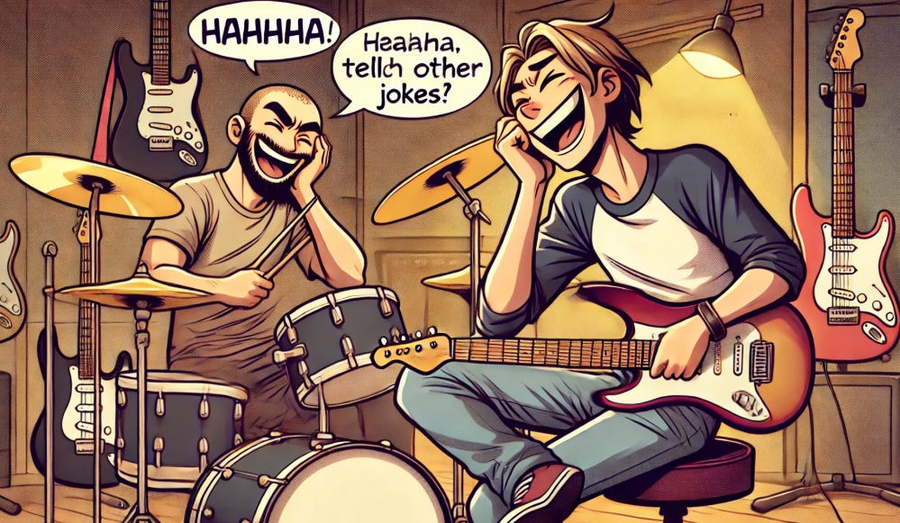 β€œHey, guitarist! How do you get a guitarist to stop playing? Put some sheet music in front of them!” 🎡πŸ₯
